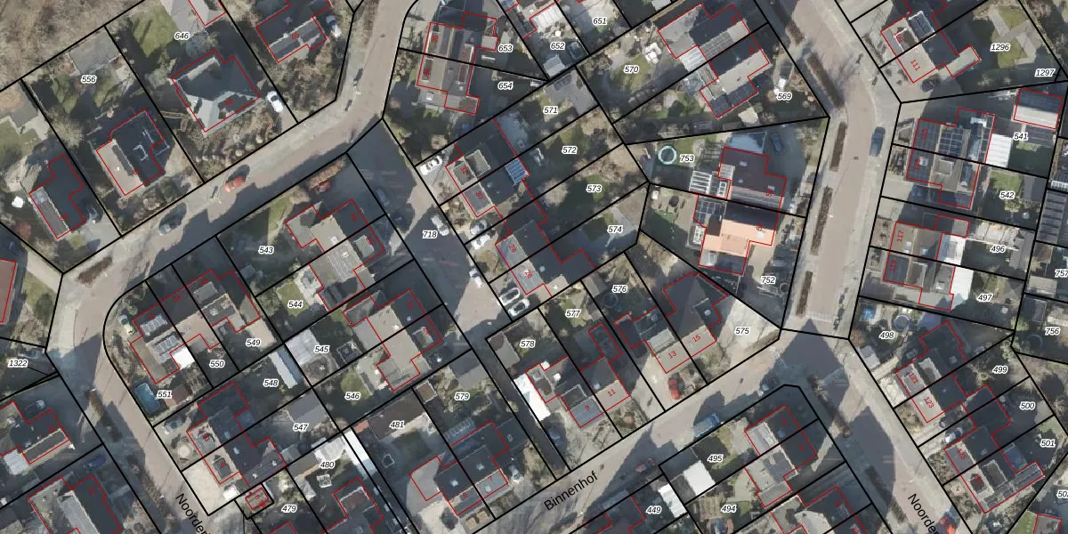 Gebruik de zoekbalk of klik op een perceel voor informatie over de adressen binnen dit perceel.