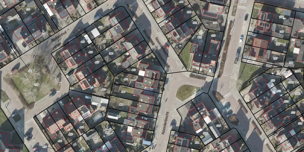 Gebruik de zoekbalk of klik op een perceel voor informatie over de adressen binnen dit perceel.