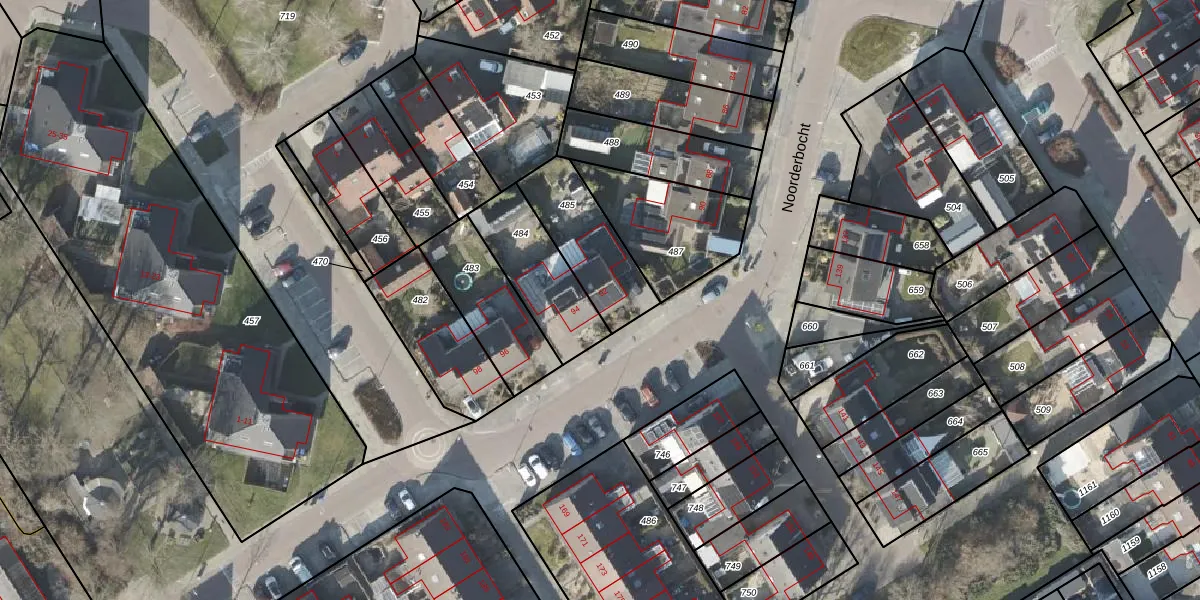 Gebruik de zoekbalk of klik op een perceel voor informatie over de adressen binnen dit perceel.