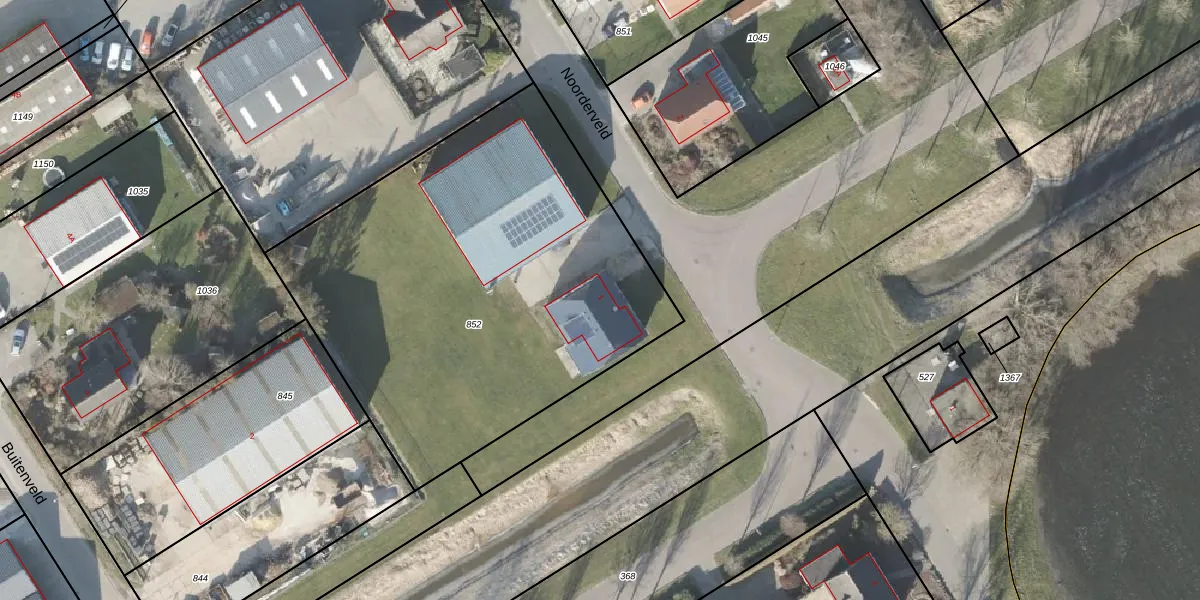 Het perceel waarop Noorderveld 1 staat heeft een oppervlakte van 2496 m². Dit is een zeer groot perceel. De perceeloppervlakte wordt geregistreerd door het Kadaster. Gedetailleerde informatie over de maten van dit perceel kunt u vinden in het rapport Kadastrale kaart met maatvoering van Noorderveld 1.