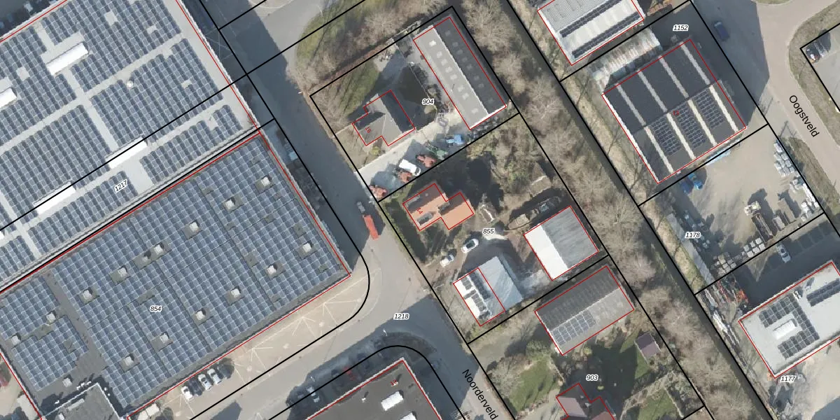 Het perceel waarop Noorderveld 14 staat heeft een oppervlakte van 1600 m². Dit is een zeer groot perceel. De perceeloppervlakte wordt geregistreerd door het Kadaster. Gedetailleerde informatie over de maten van dit perceel kunt u vinden in het rapport Kadastrale kaart met maatvoering van Noorderveld 14.
