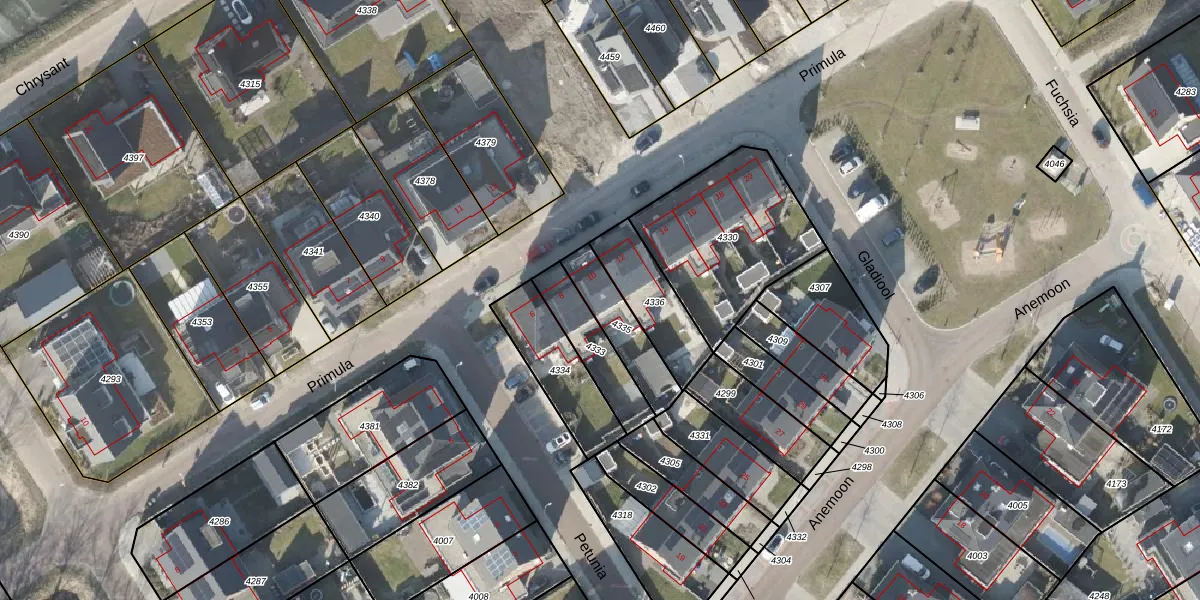 Het perceel waarop Primula 10 staat heeft een oppervlakte van 173 m². Dit is een middelgroot perceel. De perceeloppervlakte wordt geregistreerd door het Kadaster. Gedetailleerde informatie over de maten van dit perceel kunt u vinden in het rapport Kadastrale kaart met maatvoering van Primula 10.