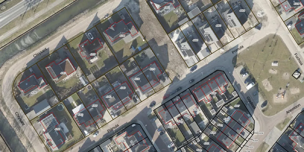 Het perceel waarop Primula 13 staat heeft een oppervlakte van 370 m². Dit is een groot perceel. De perceeloppervlakte wordt geregistreerd door het Kadaster. Gedetailleerde informatie over de maten van dit perceel kunt u vinden in het rapport Kadastrale kaart met maatvoering van Primula 13.
