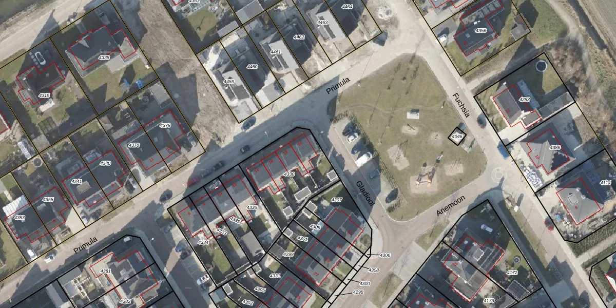 Het perceel waarop Primula 20 staat heeft een oppervlakte van 585 m². Dit is een groot perceel. De perceeloppervlakte wordt geregistreerd door het Kadaster. Gedetailleerde informatie over de maten van dit perceel kunt u vinden in het rapport Kadastrale kaart met maatvoering van Primula 20.