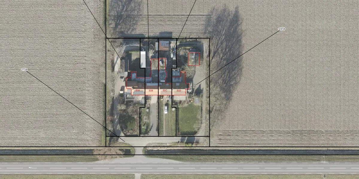 Het adres is gelegen op perceel 1974 in de sectie C en de kadastrale gemeente Noordoostpolder. De kadastrale aanduiding is aldus NOP00-C-1974. De gemiddelde perceelgrootte in Noordoostpolder is 2,1 ha. Dit perceel is kleiner: de perceeloppervlakte bedraagt 1070 m². Het grootste perceel in de kadastrale gemeente is 47,42 km². Het kleinste perceel heeft een oppervlakte van 0 m². Er zijn geen andere adressen aanwezig op het perceel. In de Basisregistratie Kadaster (BRK) werden de grenzen van het perceel geregistreerd op 01-12-1999.