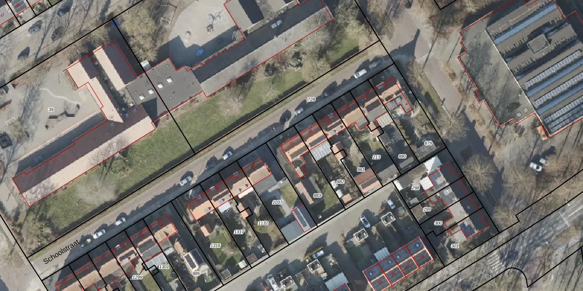 Het perceel waarop Schoolstraat 22 staat heeft een oppervlakte van 384 m². Dit is een groot perceel. De perceeloppervlakte wordt geregistreerd door het Kadaster. Gedetailleerde informatie over de maten van dit perceel kunt u vinden in het rapport Kadastrale kaart met maatvoering van Schoolstraat 22.