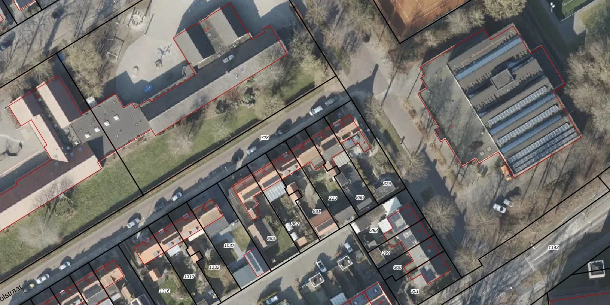 Het perceel waarop Schoolstraat 28 staat heeft een oppervlakte van 258 m². Dit is een middelgroot perceel. De perceeloppervlakte wordt geregistreerd door het Kadaster. Gedetailleerde informatie over de maten van dit perceel kunt u vinden in het rapport Kadastrale kaart met maatvoering van Schoolstraat 28.