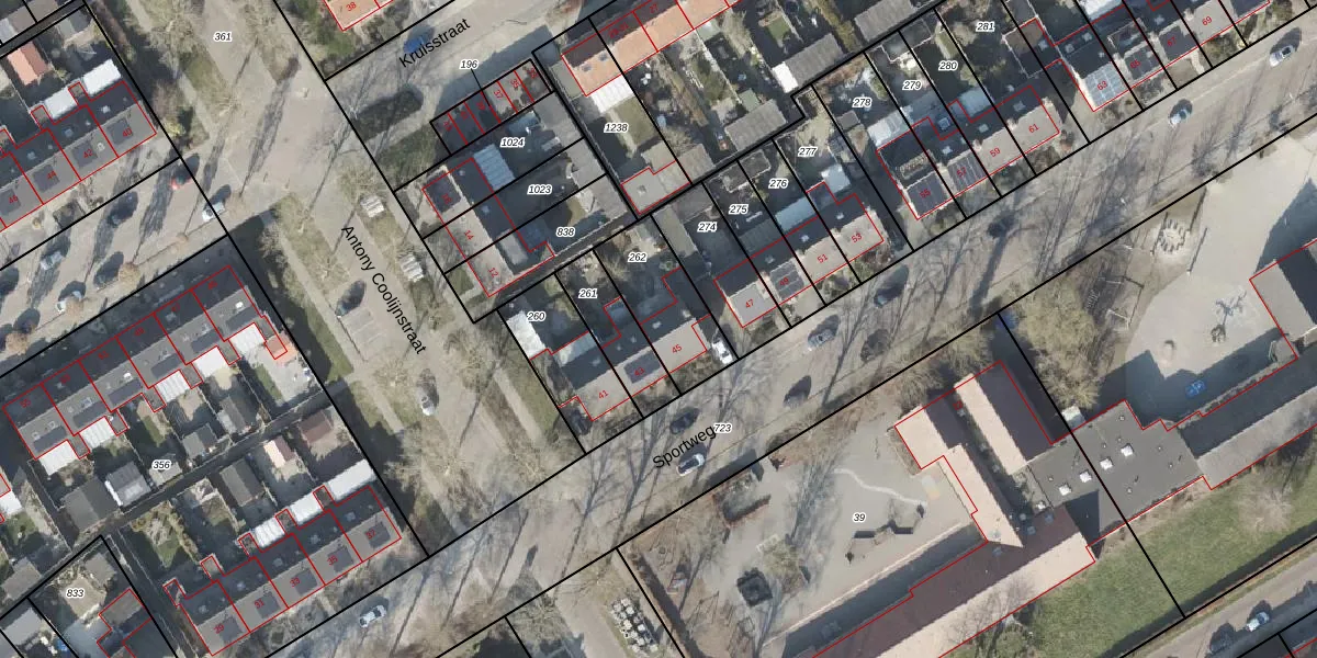 Het perceel waarop Sportweg 45 staat heeft een oppervlakte van 266 m². Dit is een middelgroot perceel. De perceeloppervlakte wordt geregistreerd door het Kadaster. Gedetailleerde informatie over de maten van dit perceel kunt u vinden in het rapport Kadastrale kaart met maatvoering van Sportweg 45.
