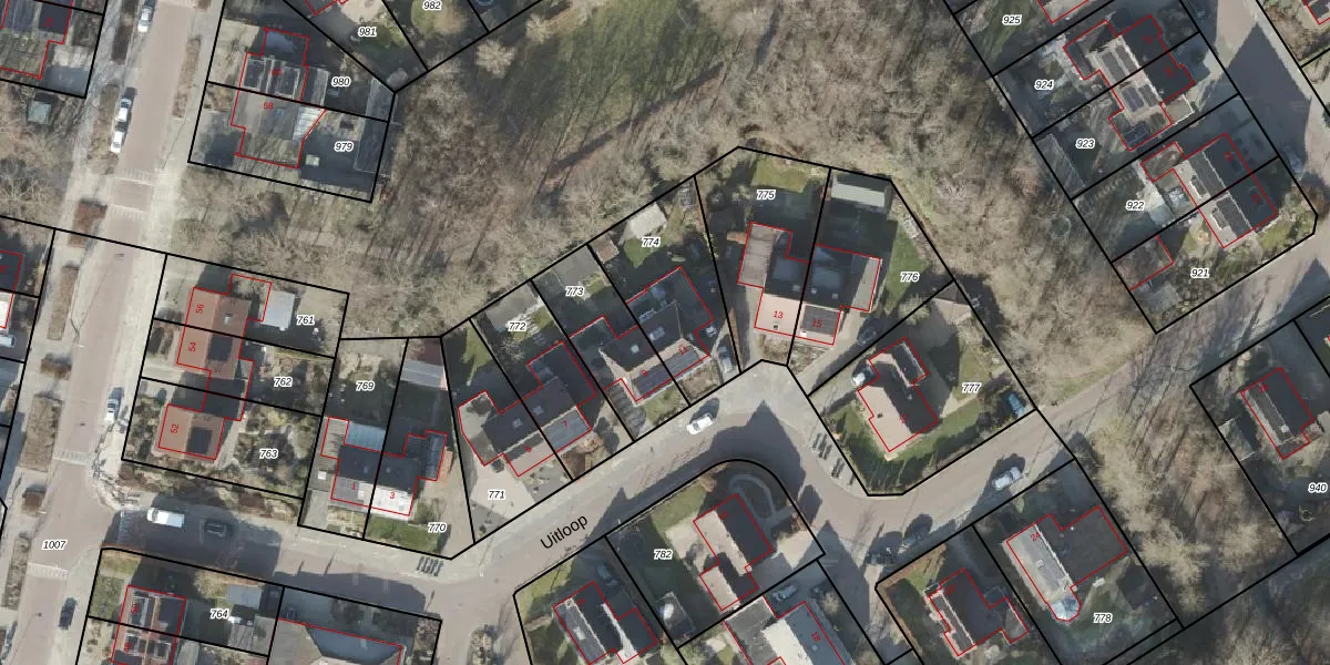 Het perceel waarop Uitloop 11 staat heeft een oppervlakte van 407 m². Dit is een groot perceel. De perceeloppervlakte wordt geregistreerd door het Kadaster. Gedetailleerde informatie over de maten van dit perceel kunt u vinden in het rapport Kadastrale kaart met maatvoering van Uitloop 11.