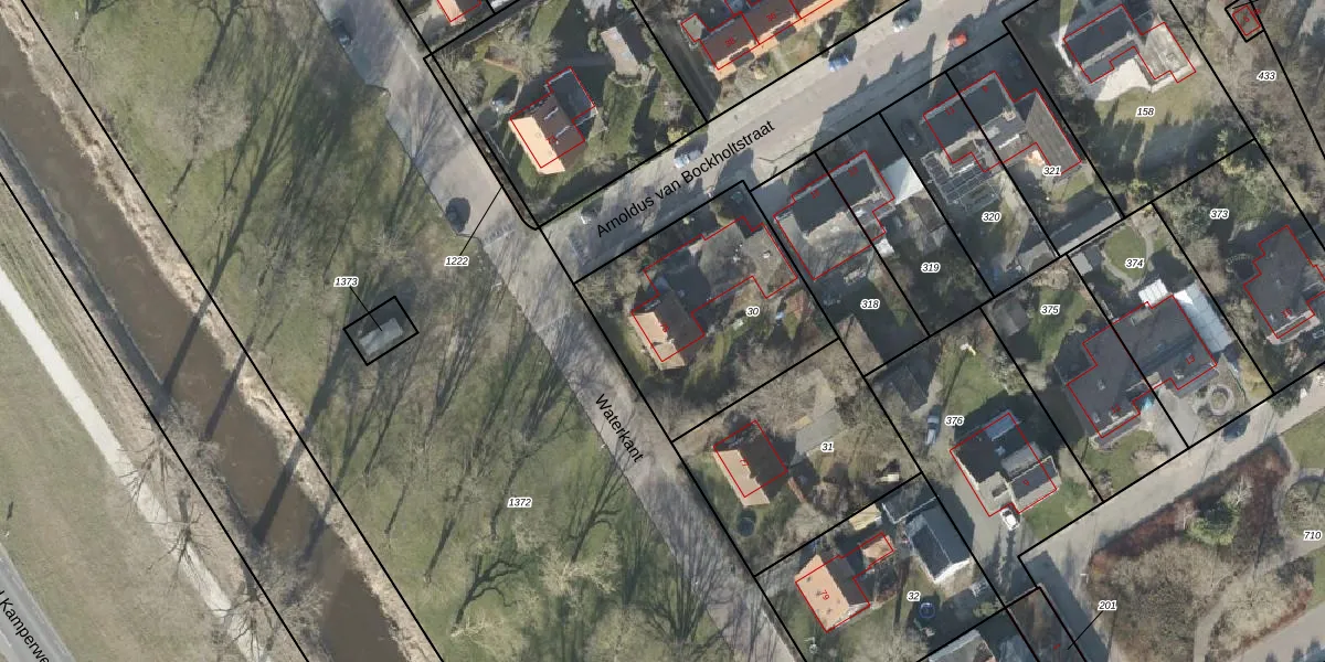 Het perceel waarop Waterkant 75 staat heeft een oppervlakte van 840 m². Dit is een groot perceel. De perceeloppervlakte wordt geregistreerd door het Kadaster. Gedetailleerde informatie over de maten van dit perceel kunt u vinden in het rapport Kadastrale kaart met maatvoering van Waterkant 75.