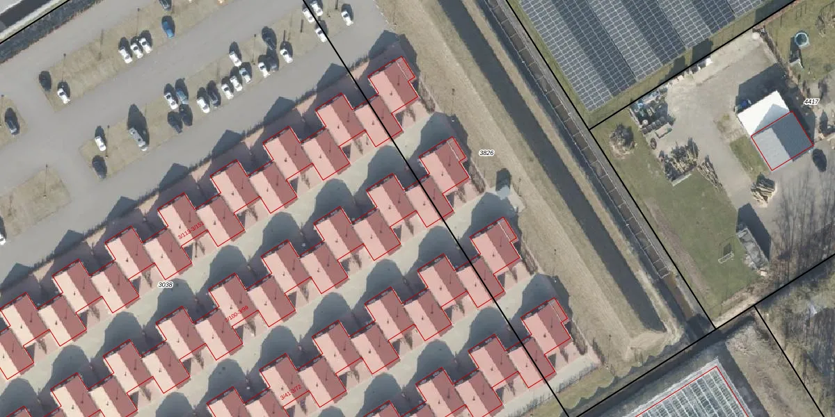 Het perceel waarop het adres ligt is NOP00-C-3038. De afkorting 'NOP00' staat voor kadastrale gemeente Noordoostpolder. De gemiddelde perceeloppervlakte in de kadastrale gemeente Noordoostpolder is 2,0 ha. Dit perceel is met zijn 2,3 ha dus groter dan gemiddeld. De grootste perceeloppervlakte in de kadastrale gemeente is 47,42 km². De kleinste oppervlakte bedraagt 0 m². Op het perceel zijn 140 adressen aanwezig. De huidige grenzen van het perceel zijn digitaal in de Basisregistratie Kadaster (BRK) geregistreerd op 21-11-1997.