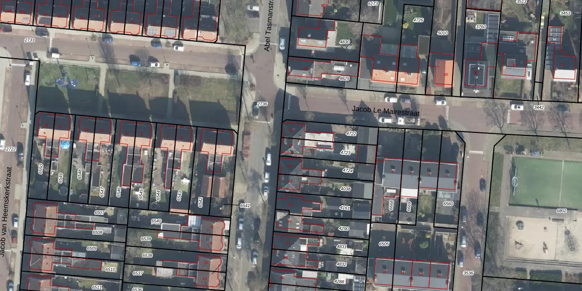 Gebruik de zoekbalk of klik op een perceel voor informatie over de adressen binnen dit perceel.