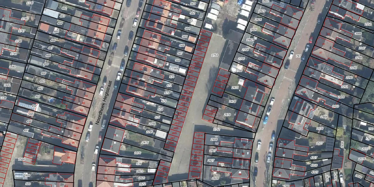 Het perceel waarop Abraham Strickstraat 48-16 staat heeft een oppervlakte van 2476 m². Dit is een zeer groot perceel. De perceeloppervlakte wordt geregistreerd door het Kadaster. Gedetailleerde informatie over de maten van dit perceel kunt u vinden in het rapport Kadastrale kaart met maatvoering van Abraham Strickstraat 48-16.