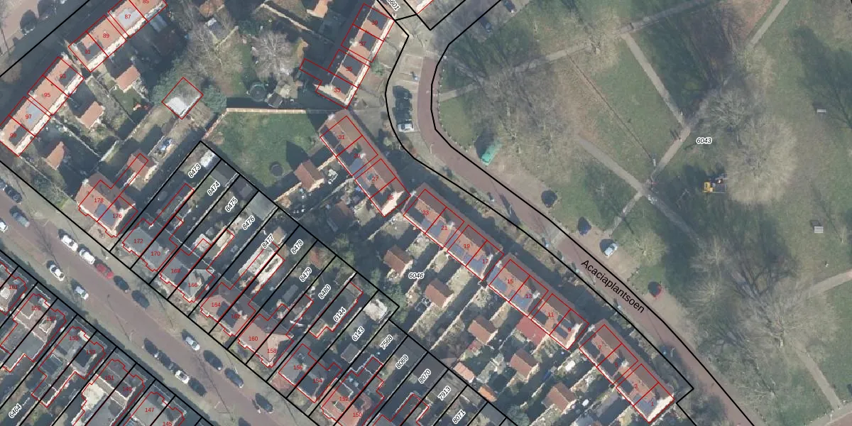 Het perceel waarop Acaciaplantsoen 23 staat heeft een oppervlakte van 8985 m². Dit is een zeer groot perceel. De perceeloppervlakte wordt geregistreerd door het Kadaster. Gedetailleerde informatie over de maten van dit perceel kunt u vinden in het rapport Kadastrale kaart met maatvoering van Acaciaplantsoen 23.