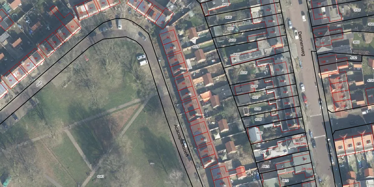 Het perceel waarop Acaciaplantsoen 91 staat heeft een oppervlakte van 1,2 ha. Dit is een zeer groot perceel. De perceeloppervlakte wordt geregistreerd door het Kadaster. Gedetailleerde informatie over de maten van dit perceel kunt u vinden in het rapport Kadastrale kaart met maatvoering van Acaciaplantsoen 91.