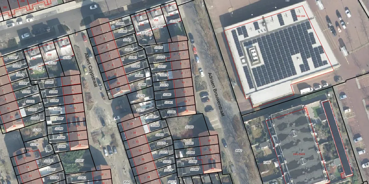 Het perceel waarop Adriaen Brouwerstraat 12 staat heeft een oppervlakte van 107 m². Dit is een middelgroot perceel. De perceeloppervlakte wordt geregistreerd door het Kadaster. Gedetailleerde informatie over de maten van dit perceel kunt u vinden in het rapport Kadastrale kaart met maatvoering van Adriaen Brouwerstraat 12.