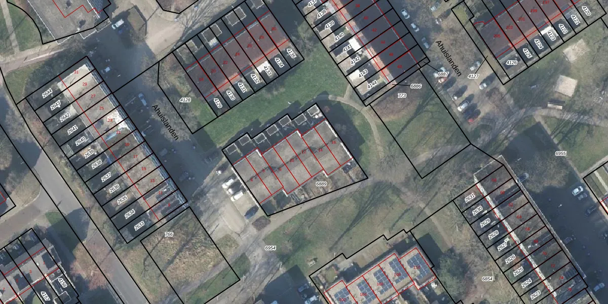 Het perceel waarop Ahuislanden 12 staat heeft een oppervlakte van 973 m². Dit is een groot perceel. De perceeloppervlakte wordt geregistreerd door het Kadaster. Gedetailleerde informatie over de maten van dit perceel kunt u vinden in het rapport Kadastrale kaart met maatvoering van Ahuislanden 12.