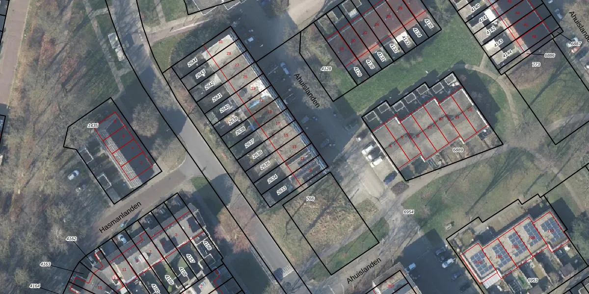 Ahuislanden 13 is gelegen op kadastraal perceel LNK00Z2635. Deze kadastrale aanduiding is uniek en wordt gebruikt door het Kadaster om eigendomsrechten en andere zakelijke rechten vast te leggen. Het perceel maakt onderdeel uit van de kadastrale gemeente Lonneker.