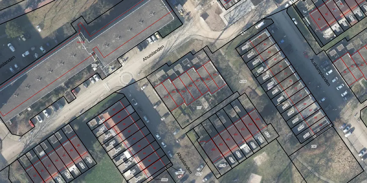 Het perceel waarop Ahuislanden 183 staat heeft een oppervlakte van 1116 m². Dit is een zeer groot perceel. De perceeloppervlakte wordt geregistreerd door het Kadaster. Gedetailleerde informatie over de maten van dit perceel kunt u vinden in het rapport Kadastrale kaart met maatvoering van Ahuislanden 183.