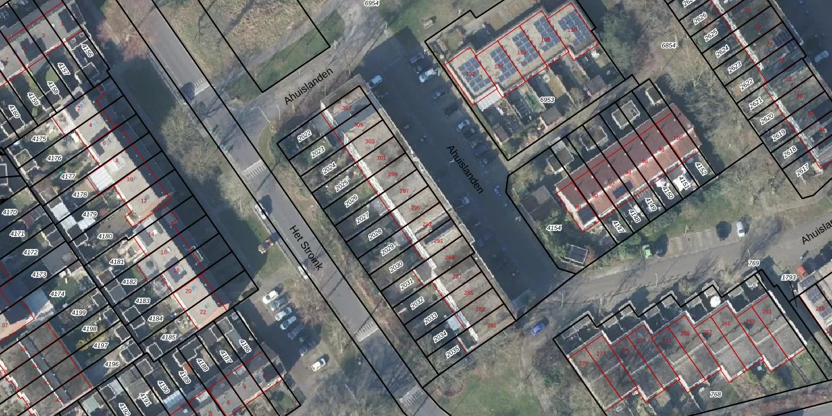 Het perceel waarop Ahuislanden 295 staat heeft een oppervlakte van 116 m². Dit is een middelgroot perceel. De perceeloppervlakte wordt geregistreerd door het Kadaster. Gedetailleerde informatie over de maten van dit perceel kunt u vinden in het rapport Kadastrale kaart met maatvoering van Ahuislanden 295.