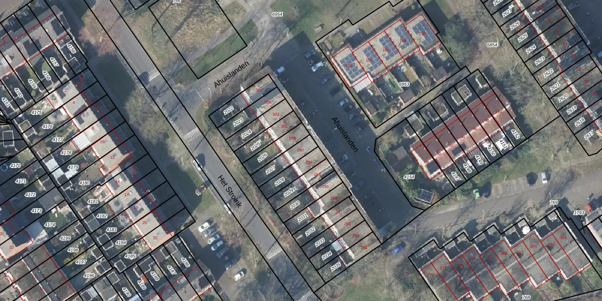 Het perceel waarop Ahuislanden 297 staat heeft een oppervlakte van 117 m². Dit is een middelgroot perceel. De perceeloppervlakte wordt geregistreerd door het Kadaster. Gedetailleerde informatie over de maten van dit perceel kunt u vinden in het rapport Kadastrale kaart met maatvoering van Ahuislanden 297.