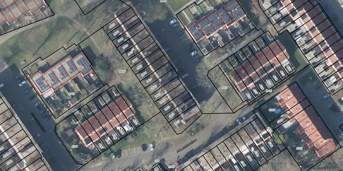 Het perceel waarop Ahuislanden 78 staat heeft een oppervlakte van 94 m². Dit is een klein perceel. De perceeloppervlakte wordt geregistreerd door het Kadaster. Gedetailleerde informatie over de maten van dit perceel kunt u vinden in het rapport Kadastrale kaart met maatvoering van Ahuislanden 78.