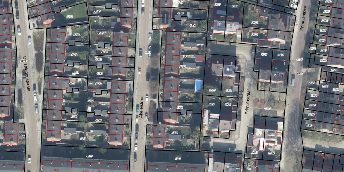 Het perceel waarop Akeleistraat 22 staat heeft een oppervlakte van 1054 m². Dit is een zeer groot perceel. De perceeloppervlakte wordt geregistreerd door het Kadaster. Gedetailleerde informatie over de maten van dit perceel kunt u vinden in het rapport Kadastrale kaart met maatvoering van Akeleistraat 22.