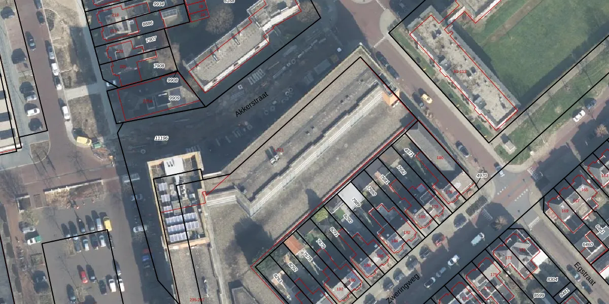 Het perceel waarop Akkerstraat 319 staat heeft een oppervlakte van 3340 m². Dit is een zeer groot perceel. De perceeloppervlakte wordt geregistreerd door het Kadaster. Gedetailleerde informatie over de maten van dit perceel kunt u vinden in het rapport Kadastrale kaart met maatvoering van Akkerstraat 319.