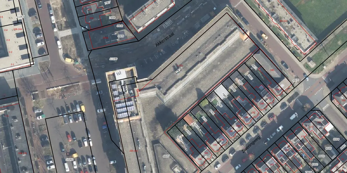 Het perceel waarop Akkerstraat 619 staat heeft een oppervlakte van 3340 m². Dit is een zeer groot perceel. De perceeloppervlakte wordt geregistreerd door het Kadaster. Gedetailleerde informatie over de maten van dit perceel kunt u vinden in het rapport Kadastrale kaart met maatvoering van Akkerstraat 619.