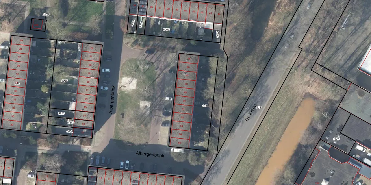 Het perceel waarop Albergenbrink 49 staat heeft een oppervlakte van 1063 m². Dit is een zeer groot perceel. De perceeloppervlakte wordt geregistreerd door het Kadaster. Gedetailleerde informatie over de maten van dit perceel kunt u vinden in het rapport Kadastrale kaart met maatvoering van Albergenbrink 49.