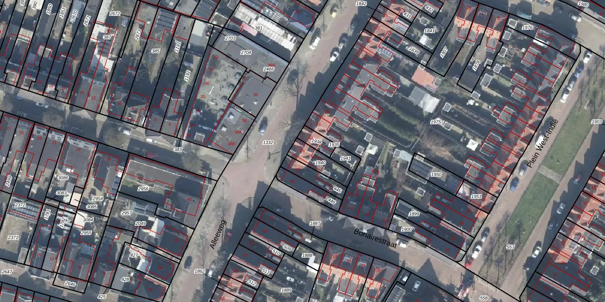 Gebruik de zoekbalk of klik op een perceel voor informatie over de adressen binnen dit perceel.