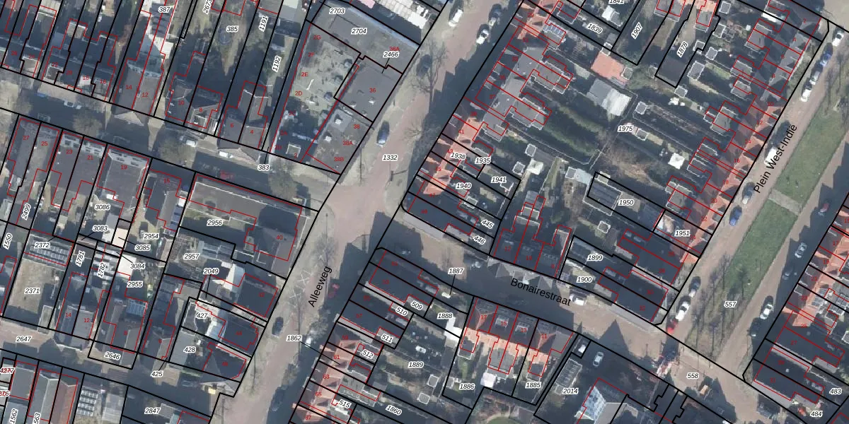 Gebruik de zoekbalk of klik op een perceel voor informatie over de adressen binnen dit perceel.