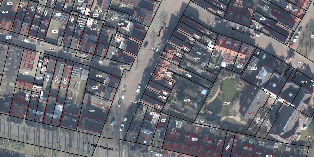 Het perceel waarop Alleeweg 67 staat heeft een oppervlakte van 69 m². Dit is een klein perceel. De perceeloppervlakte wordt geregistreerd door het Kadaster. Gedetailleerde informatie over de maten van dit perceel kunt u vinden in het rapport Kadastrale kaart met maatvoering van Alleeweg 67.
