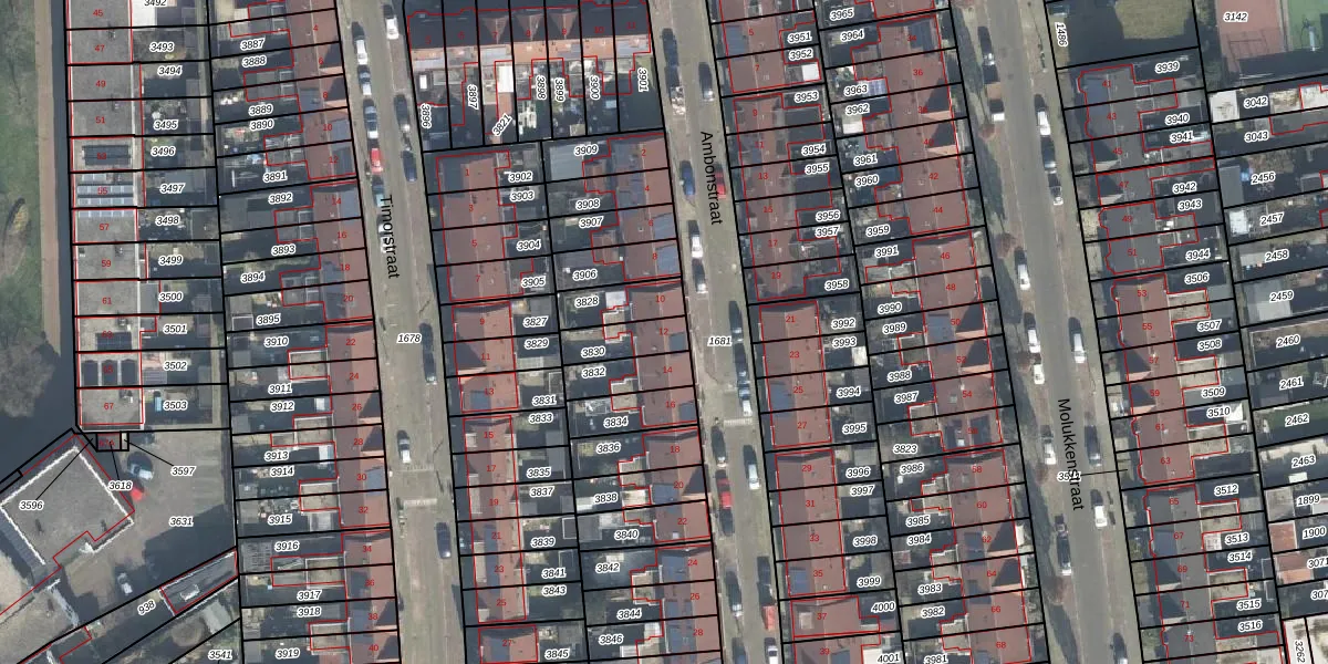 Het perceel waarop Ambonstraat 12 staat heeft een oppervlakte van 103 m². Dit is een middelgroot perceel. De perceeloppervlakte wordt geregistreerd door het Kadaster. Gedetailleerde informatie over de maten van dit perceel kunt u vinden in het rapport Kadastrale kaart met maatvoering van Ambonstraat 12.