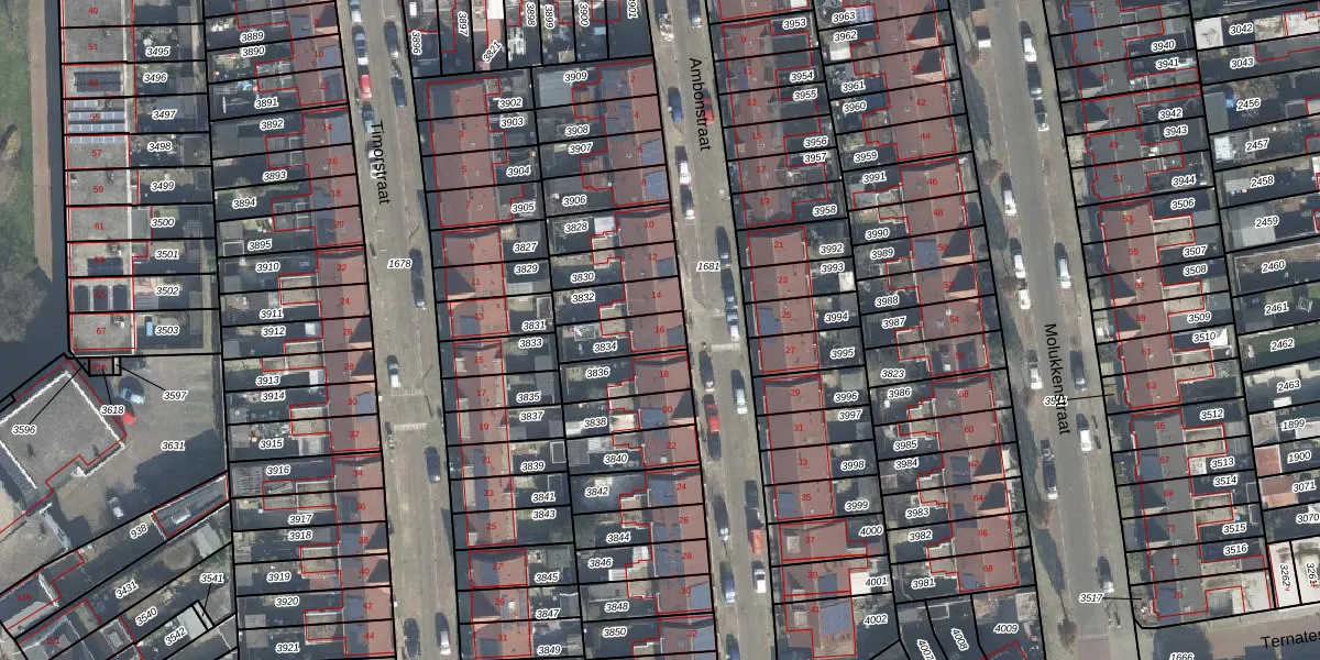 Het perceel waarop Ambonstraat 16 staat heeft een oppervlakte van 114 m². Dit is een middelgroot perceel. De perceeloppervlakte wordt geregistreerd door het Kadaster. Gedetailleerde informatie over de maten van dit perceel kunt u vinden in het rapport Kadastrale kaart met maatvoering van Ambonstraat 16.