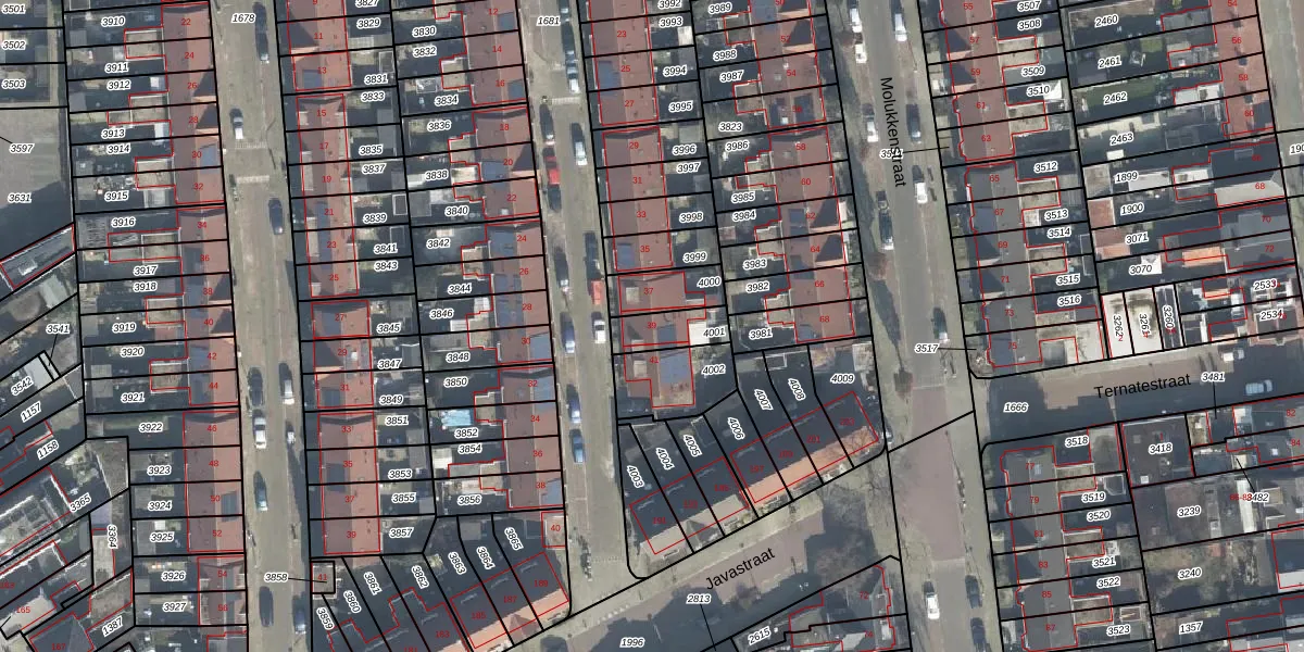 Het perceel waarop Ambonstraat 39 staat heeft een oppervlakte van 104 m². Dit is een middelgroot perceel. De perceeloppervlakte wordt geregistreerd door het Kadaster. Gedetailleerde informatie over de maten van dit perceel kunt u vinden in het rapport Kadastrale kaart met maatvoering van Ambonstraat 39.