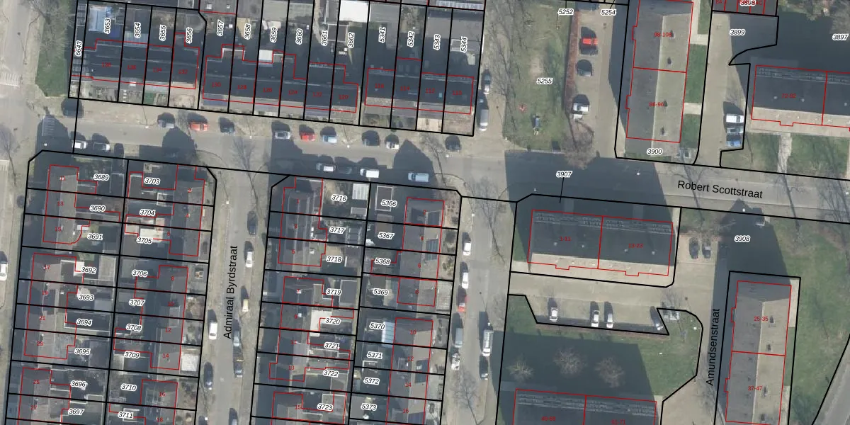 Gebruik de zoekbalk of klik op een perceel voor informatie over de adressen binnen dit perceel.