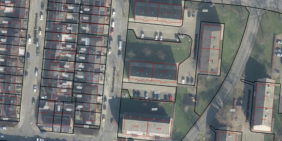 Het perceel waarop Amundsenstraat 57 staat heeft een oppervlakte van 3720 m². Dit is een zeer groot perceel. De perceeloppervlakte wordt geregistreerd door het Kadaster. Gedetailleerde informatie over de maten van dit perceel kunt u vinden in het rapport Kadastrale kaart met maatvoering van Amundsenstraat 57.