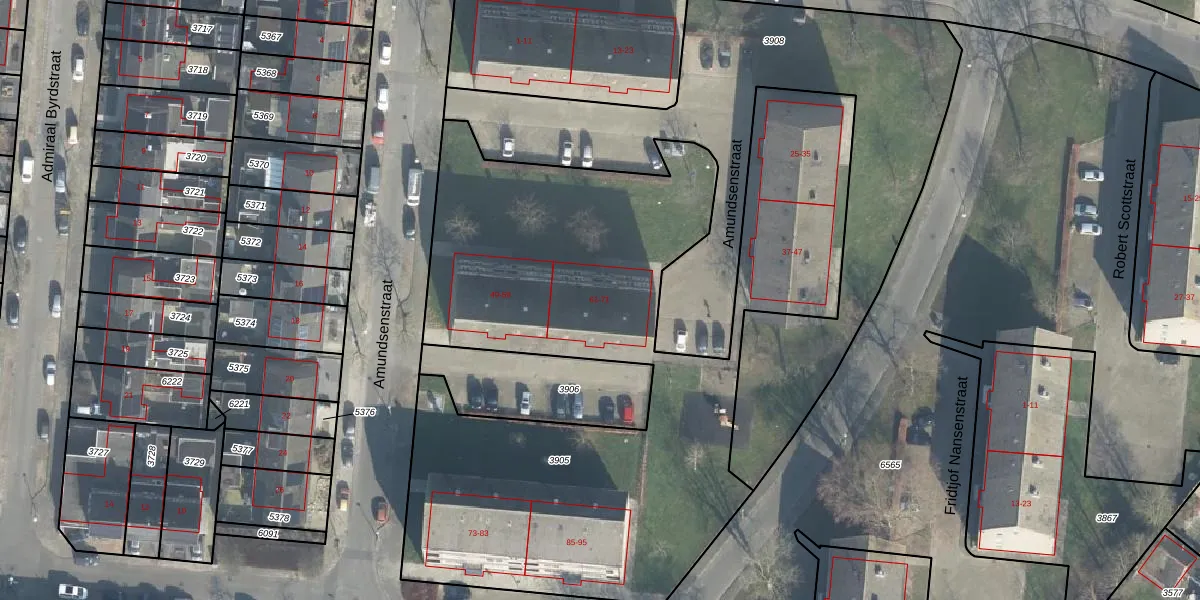 Het perceel waarop Amundsenstraat 71 staat heeft een oppervlakte van 3720 m². Dit is een zeer groot perceel. De perceeloppervlakte wordt geregistreerd door het Kadaster. Gedetailleerde informatie over de maten van dit perceel kunt u vinden in het rapport Kadastrale kaart met maatvoering van Amundsenstraat 71.