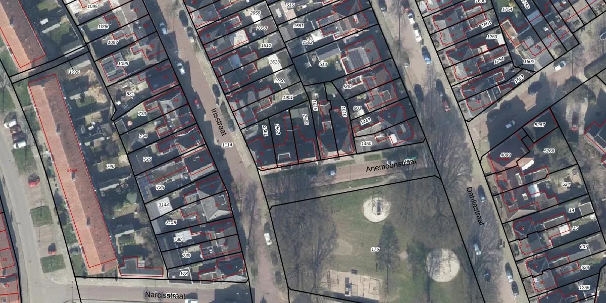 Gebruik de zoekbalk of klik op een perceel voor informatie over de adressen binnen dit perceel.