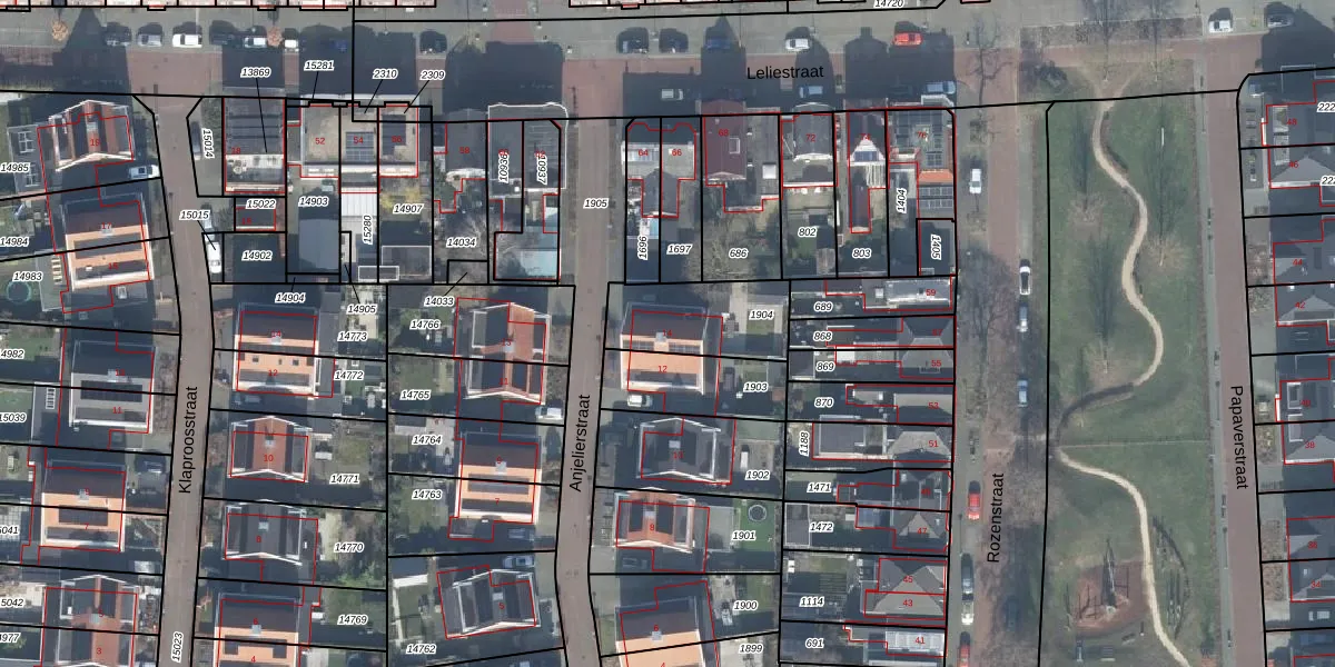 Gebruik de zoekbalk of klik op een perceel voor informatie over de adressen binnen dit perceel.