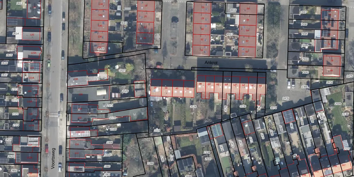 Het perceel waarop Ankrot 40 staat heeft een oppervlakte van 1475 m². Dit is een zeer groot perceel. De perceeloppervlakte wordt geregistreerd door het Kadaster. Gedetailleerde informatie over de maten van dit perceel kunt u vinden in het rapport Kadastrale kaart met maatvoering van Ankrot 40.