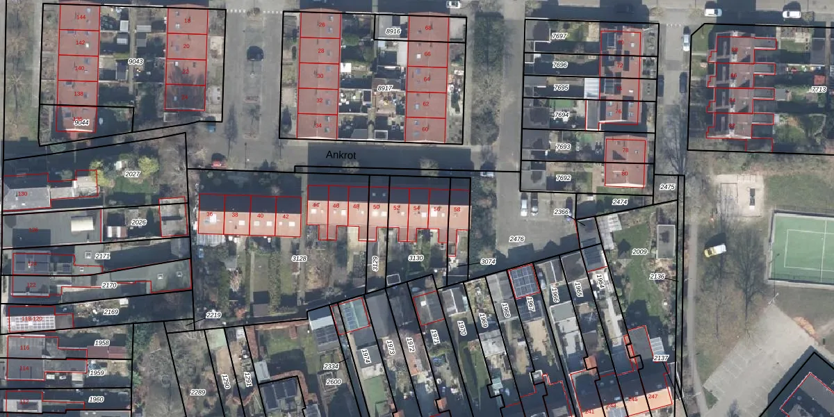 Het perceel waarop Ankrot 54 staat heeft een oppervlakte van 370 m². Dit is een groot perceel. De perceeloppervlakte wordt geregistreerd door het Kadaster. Gedetailleerde informatie over de maten van dit perceel kunt u vinden in het rapport Kadastrale kaart met maatvoering van Ankrot 54.