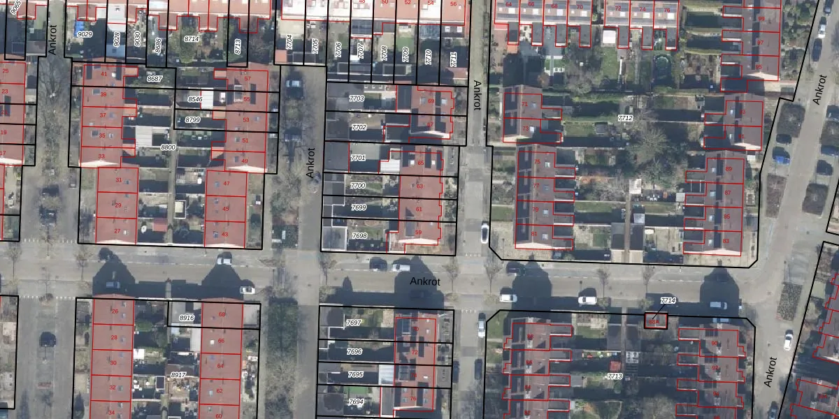Het perceel waarop Ankrot 61 staat heeft een oppervlakte van 172 m². Dit is een middelgroot perceel. De perceeloppervlakte wordt geregistreerd door het Kadaster. Gedetailleerde informatie over de maten van dit perceel kunt u vinden in het rapport Kadastrale kaart met maatvoering van Ankrot 61.