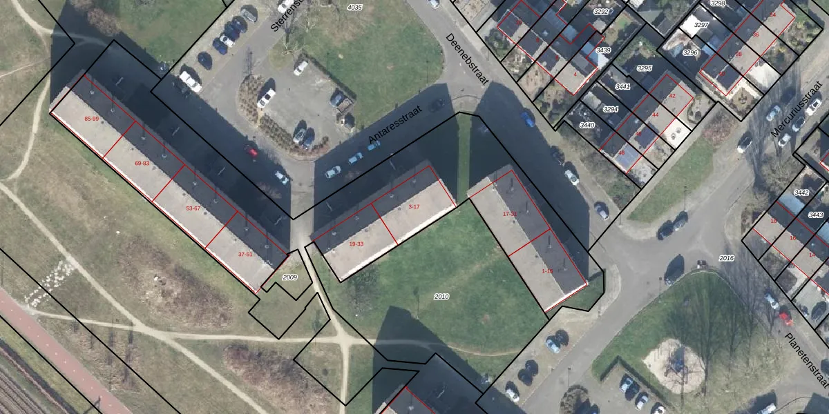 Het perceel waarop Antaresstraat 11 staat heeft een oppervlakte van 1,2 ha. Dit is een zeer groot perceel. De perceeloppervlakte wordt geregistreerd door het Kadaster. Gedetailleerde informatie over de maten van dit perceel kunt u vinden in het rapport Kadastrale kaart met maatvoering van Antaresstraat 11.