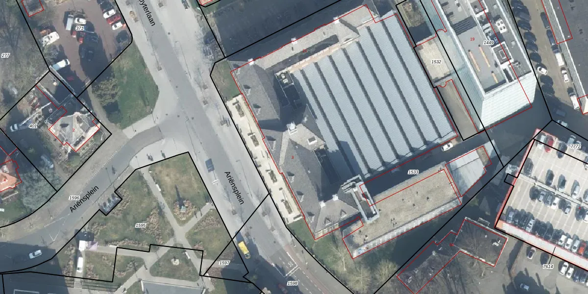 Het perceel waarop Ariënsplein 3 staat heeft een oppervlakte van 5935 m². Dit is een zeer groot perceel. De perceeloppervlakte wordt geregistreerd door het Kadaster. Gedetailleerde informatie over de maten van dit perceel kunt u vinden in het rapport Kadastrale kaart met maatvoering van Ariënsplein 3.