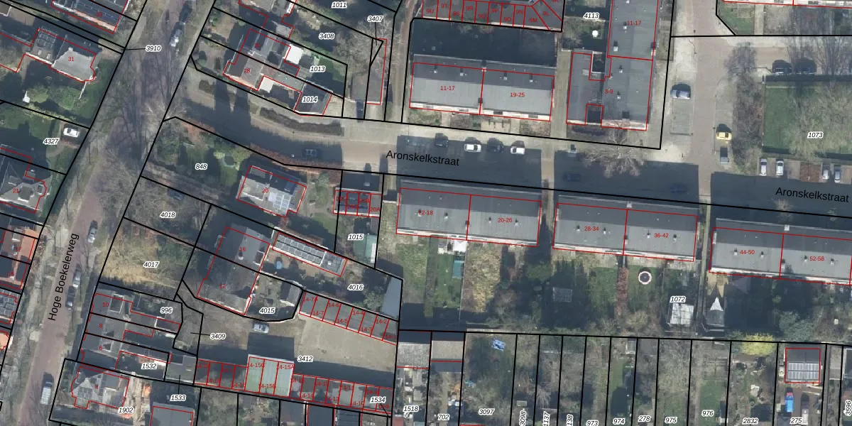 Het perceel waarop Aronskelkstraat 14 staat heeft een oppervlakte van 4725 m². Dit is een zeer groot perceel. De perceeloppervlakte wordt geregistreerd door het Kadaster. Gedetailleerde informatie over de maten van dit perceel kunt u vinden in het rapport Kadastrale kaart met maatvoering van Aronskelkstraat 14.