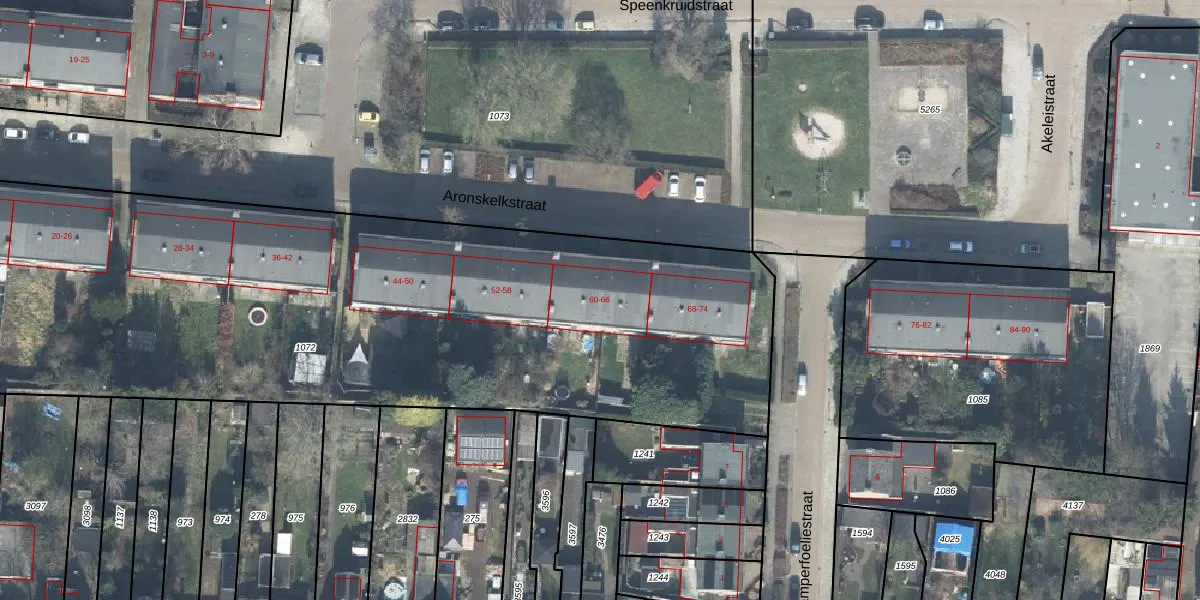 Het perceel waarop Aronskelkstraat 64 staat heeft een oppervlakte van 4725 m². Dit is een zeer groot perceel. De perceeloppervlakte wordt geregistreerd door het Kadaster. Gedetailleerde informatie over de maten van dit perceel kunt u vinden in het rapport Kadastrale kaart met maatvoering van Aronskelkstraat 64.