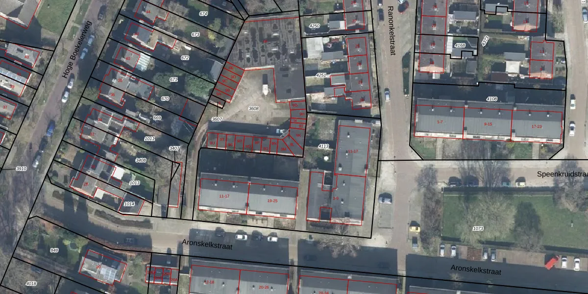 Aronskelkstraat 9-L is gelegen op kadastraal perceel LNK00Q3608. Deze kadastrale aanduiding is uniek en wordt gebruikt door het Kadaster om eigendomsrechten en andere zakelijke rechten vast te leggen. Het perceel maakt onderdeel uit van de kadastrale gemeente Lonneker.