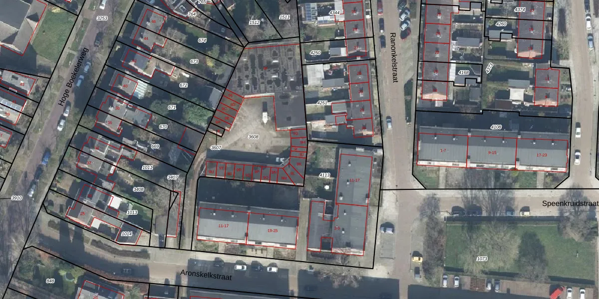 Aronskelkstraat 9-I is gelegen op kadastraal perceel LNK00Q3608. Deze kadastrale aanduiding is uniek en wordt gebruikt door het Kadaster om eigendomsrechten en andere zakelijke rechten vast te leggen. Het perceel maakt onderdeel uit van de kadastrale gemeente Lonneker.